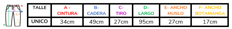 (A la hora de elegir tu talle, debes tener en cuenta que las mismas son tomadas en plano, por lo cual debes multiplicarlas x2 para saber el contorno real y también tener en cuenta la elasticidad de la tela).