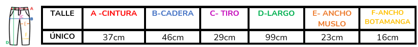 (A la hora de elegir tu talle, debes tener en cuenta que las mismas son tomadas en plano, por lo cual debes multiplicarlas x2 para saber el contorno real y también tener en cuenta la elasticidad de la tela).