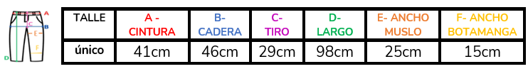 (A la hora de elegir tu talle, debes tener en cuenta que las mismas son tomadas en plano, por lo cual debes multiplicarlas x2 para saber el contorno real y también tener en cuenta la elasticidad de la tela).