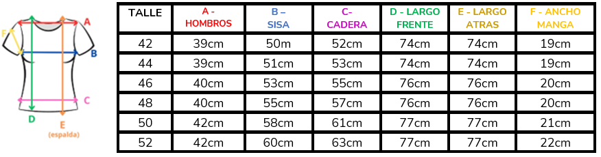 (A la hora de elegir tu talle, debes tener en cuenta que las mismas son tomadas en plano, por lo cual debes multiplicarlas x2 para saber el contorno real y también tener en cuenta la elasticidad de la tela).
