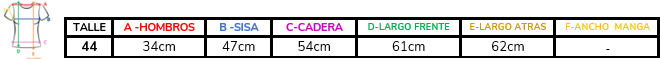 (A la hora de elegir tu talle, debes tener en cuenta que las mismas son tomadas en plano, por lo cual debes multiplicarlas x2 para saber el contorno real y también tener en cuenta la elasticidad de la tela).