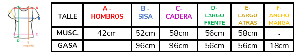 (A la hora de elegir tu talle, debes tener en cuenta que las mismas son tomadas en plano, por lo cual debes multiplicarlas x2 para saber el contorno real y también tener en cuenta la elasticidad de la tela).