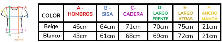 (A la hora de elegir tu talle, debes tener en cuenta que las mismas son tomadas en plano, por lo cual debes multiplicarlas x2 para saber el contorno real y también tener en cuenta la elasticidad de la tela).