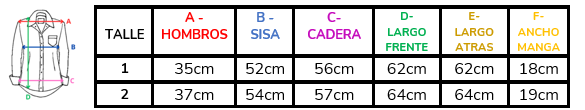 (A la hora de elegir tu talle, debes tener en cuenta que las mismas son tomadas en plano, por lo cual debes multiplicarlas x2 para saber el contorno real y también tener en cuenta la elasticidad de la tela).
