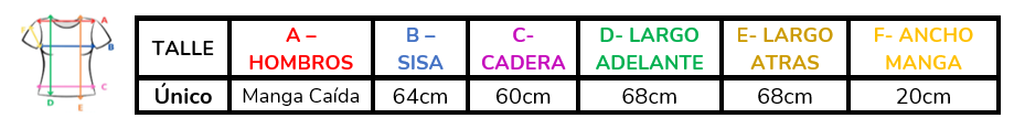 (A la hora de elegir tu talle, debes tener en cuenta que las mismas son tomadas en plano, por lo cual debes multiplicarlas x2 para saber el contorno real y también tener en cuenta la elasticidad de la tela).