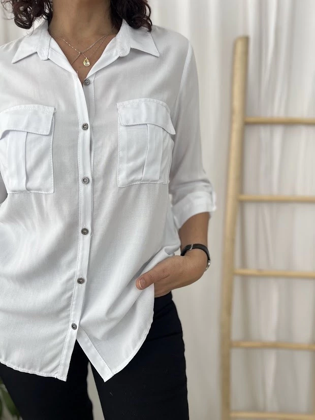 🌼 ¡DESCUBRÍ LA BLUSA MANY! 🌟 ESTA BLUSA TIENE COMO DETALLE SUS DOS BOLSILLOS AL FRENTE. CONFECCIONADA EN FIBRANA, ES PERFECTA PARA DARLE UN TOQUE CUALQUIER OUTFIT. LAS MANGAS 3/4 LE DAN UN AIRE ELEGANTE Y FRESCO EN CUALQUIER OCASIÓN. 🧥🎒