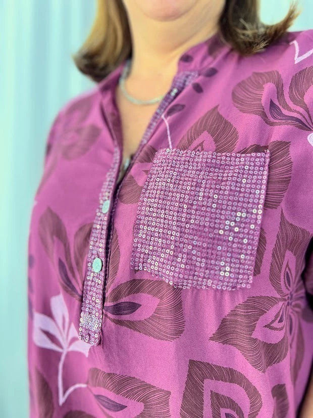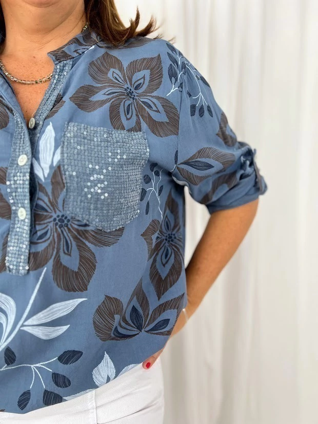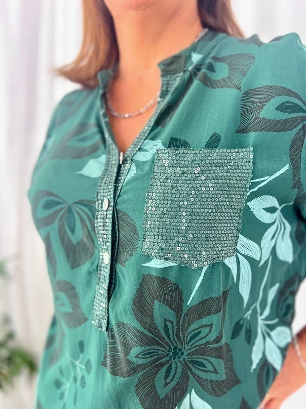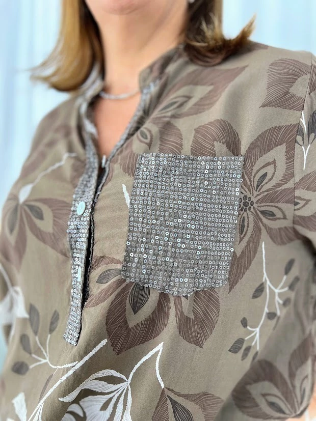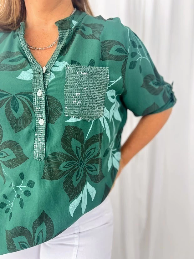CONFECCIONADA EN VISCOSA ITALIANA. VIENE CON UN BOLSILLO ADORNADO CON LENTEJUELAS QUE LE AÑADE UN TOQUE DE BRILLO, SUS MANGAS SON REGULABLES. 🌿✨ ESTA PRENDA ES PERFECTA PARA REALZAR TU LOOK, PERFECTA UNA SALIDA CASUAL O UN EVENTO ESPECIAL. 🌸✨
