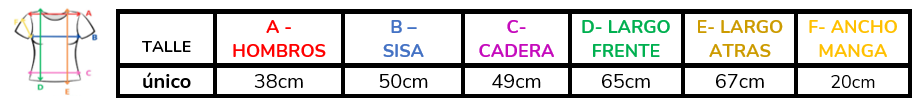 Aclaración: las medidas corresponden a la parte de abajo, la gasa es más suelta y amplia. Ancho de manga de la gasa