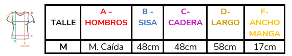(A la hora de elegir tu talle, debes tener en cuenta que las mismas son tomadas en plano, por lo cual debes multiplicarlas x2 para saber el contorno real y también tener en cuenta la elasticidad de la tela).