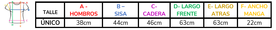 ACLARACIÓN: LAS MEDIDAS CORRESPONDEN A LA PRENDA DE ABAJO, SALVO EL LARGO DE LA GASA QUE SE SUPERPONE POR ENCIMA.