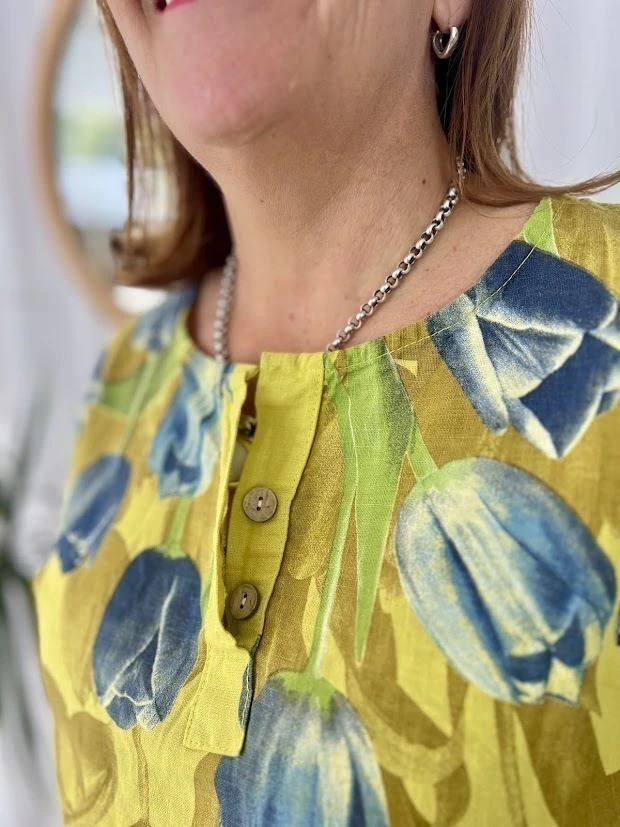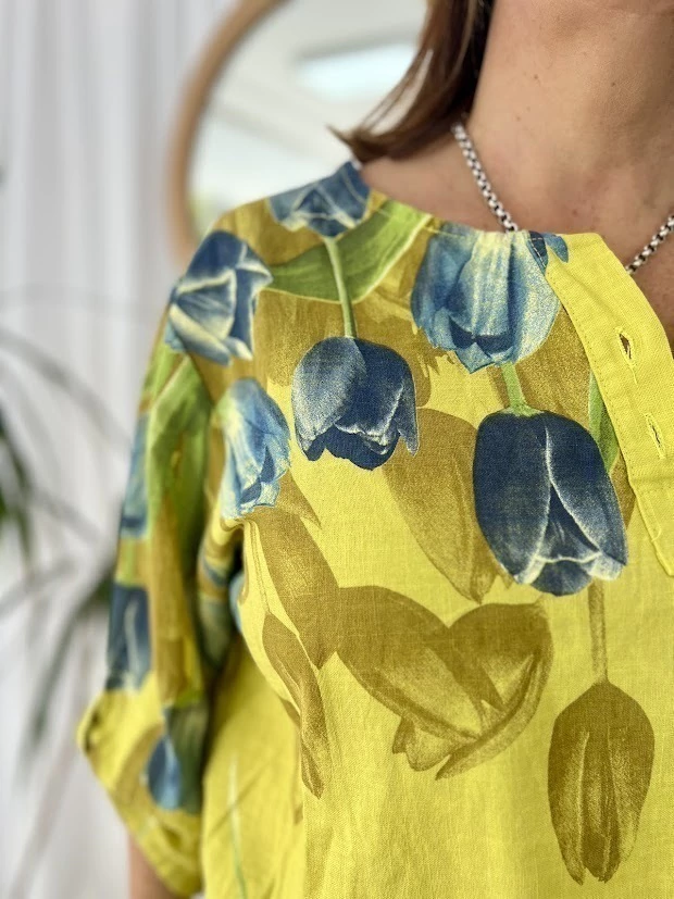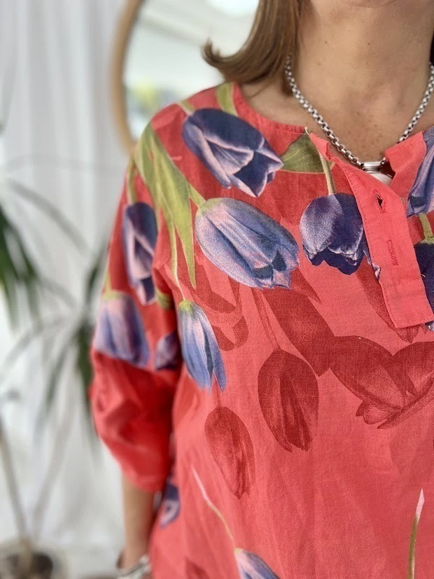 🌸 DESCUBRE LA ELEGANCIA DE ESTA BLUSA, CONFECCIONADA EN LINO ITALIANO🌸CON ESTAMPA DE TULIPANES QUE LE AÑADE UN TOQUE DE DISTINCIÓN, SUS MANGAS SON REGULABLES PARA MAYOR COMODIDAD.✨ESTA PRENDA ES PERFECTA PARA CUALQUIER OCASIÓN, YA SEA UNA SALIDA CASUAL O UN EVENTO ESPECIAL. 🌸✨