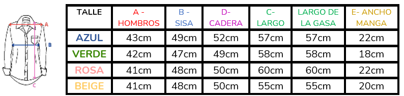 Aclaración: las medidas corresponden a la parte de abajo, la gasa es levemente suelta. Ancho de manga de la gasa