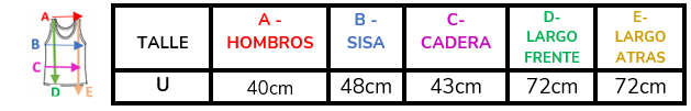 (A la hora de elegir tu talle, debes tener en cuenta que las mismas son tomadas en plano, por lo cual debes multiplicarlas x2 para saber el contorno real y también tener en cuenta la elasticidad de la tela).