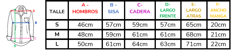 (A la hora de elegir tu talle, debes tener en cuenta que las mismas son tomadas en plano, por lo cual debes multiplicarlas x2 para saber el contorno real y también tener en cuenta la elasticidad de la tela).