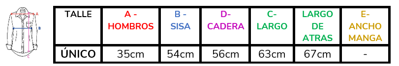 (A la hora de elegir tu talle, debes tener en cuenta que las mismas son tomadas en plano, por lo cual debes multiplicarlas x2 para saber el contorno real y también tener en cuenta la elasticidad de la tela).