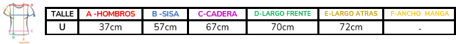 (A la hora de elegir tu talle, debes tener en cuenta que las mismas son tomadas en plano, por lo cual debes multiplicarlas x2 para saber el contorno real y también tener en cuenta la elasticidad de la tela).