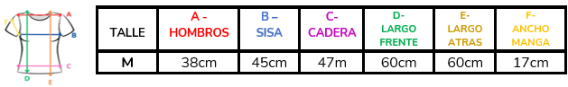 (A la hora de elegir tu talle, debes tener en cuenta que las mismas son tomadas en plano, por lo cual debes multiplicarlas x2 para saber el contorno real y también tener en cuenta la elasticidad de la tela).
