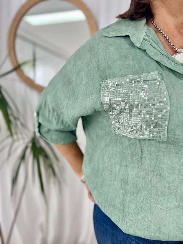 ✨ ESTA CAMISA ITALIANA ES IDEAL PARA DARLE UN TOQUE CANCHERO Y DIFERENTE A TU OUTFIT.✨CONFECCIONADA EN LINO, CON DETALLE DE UN BOLSILLO CON LENTEJUELAS QUE APORTAN UN BRILLO ESPECTACULAR.