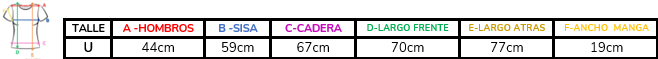 (A la hora de elegir tu talle, debes tener en cuenta que las mismas son tomadas en plano, por lo cual debes multiplicarlas x2 para saber el contorno real y también tener en cuenta la elasticidad de la tela).