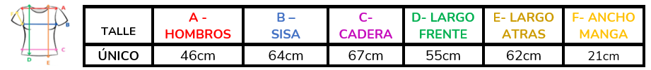 (A la hora de elegir tu talle, debes tener en cuenta que las mismas son tomadas en plano, por lo cual debes multiplicarlas x2 para saber el contorno real y también tener en cuenta la elasticidad de la tela).