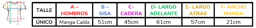 (A la hora de elegir tu talle, debes tener en cuenta que las mismas son tomadas en plano, por lo cual debes multiplicarlas x2 para saber el contorno real y también tener en cuenta la elasticidad de la tela).