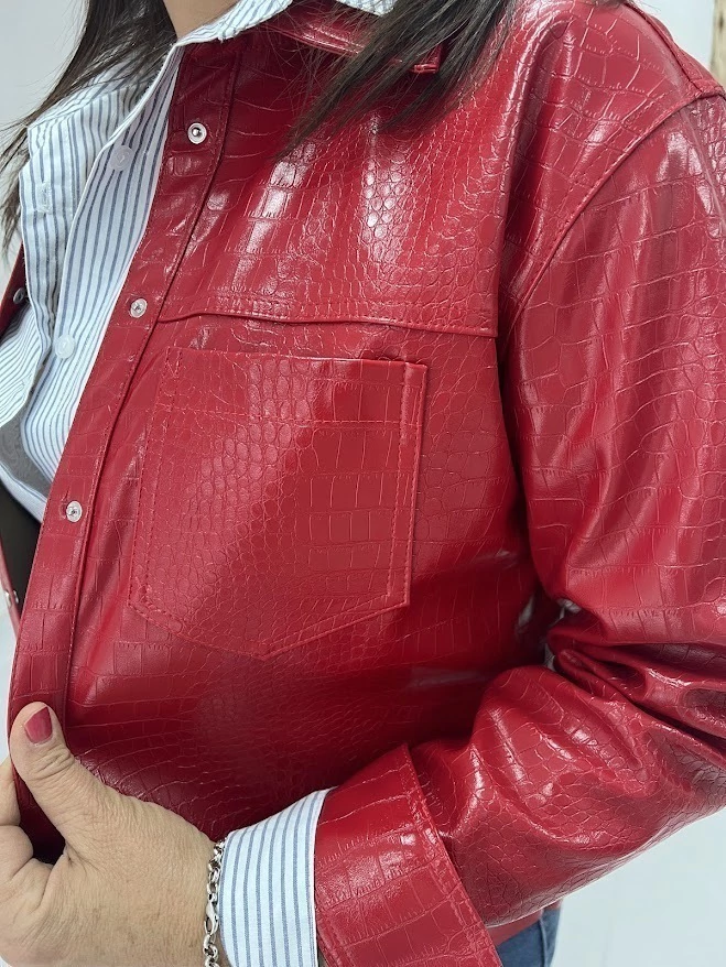 ♡JAME ES UN CAMISACO DE ECOCUERO CON UNA TRAMA INCREÍBLE TIPO REPTIL.❤️🌟¡¡ENAMORA DE SOLO VERLA!! ❤️🌟 SÚPER VERSÁTIL Y COMBINABLES, PERFECTAS PARA CREAR OUTFITS A TU ESTILO: CASUAL, FORMAL, CHIC PARA LA NOCHE O COMO VOS PREFIERAS 🌸✨ COMO DETALLE PRESENTA BOLSILLOS CAMISEROS, SE AJUSTA POR MEDIO DE BROCHES A PRESIÓN Y, AL NO ESTAR FORRADA, ES FLEXIBLE Y DE MUY BUEN CALCE. ¡¡NO TE LA PIERDAS!! 💃