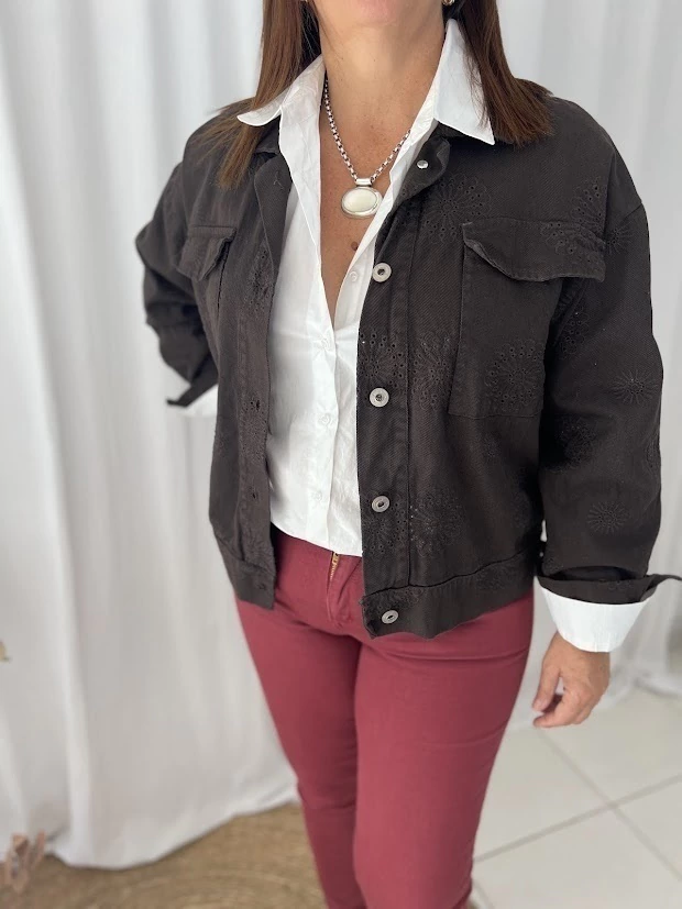 🧥LA CAMPERA TRINA ES UN ENCANTO🌸 CONFECCIONADA EN GABARDINA, COMBINA ESTRUCTURA Y ESTILO CON DELICADAS FLORES BORDADAS QUE LE APORTAN UN AIRE ROMÁNTICO Y ÚNICO. 🍂✨CIERRA CON BOTONES AL FRENTE, LO QUE PERMITE USARLA TANTO ABIERTA COMO CERRADA, ADAPTÁNDOSE A DISTINTOS LOOKS. IDEAL PARA SUMAR UN TOQUE DE COLOR Y PERSONALIDAD A TUS OUTFITS DE TODOS LOS DÍAS. 🌼✨