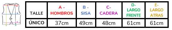 (A la hora de elegir tu talle, debes tener en cuenta que las mismas son tomadas en plano, por lo cual debes multiplicarlas x2 para saber el contorno real y también tener en cuenta la elasticidad de la tela).