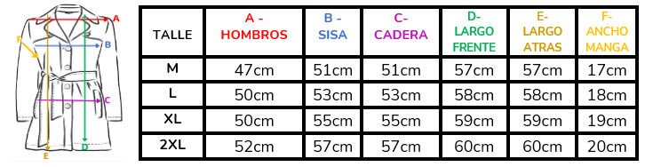 (A la hora de elegir tu talle, debes tener en cuenta que las mismas son tomadas en plano, por lo cual debes multiplicarlas x2 para saber el contorno real y también tener en cuenta la elasticidad de la tela).