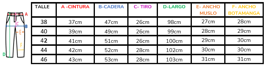 (A la hora de elegir tu talle, debes tener en cuenta que las mismas son tomadas en plano, por lo cual debes multiplicarlas x2 para saber el contorno real y también tener en cuenta la elasticidad de la tela).