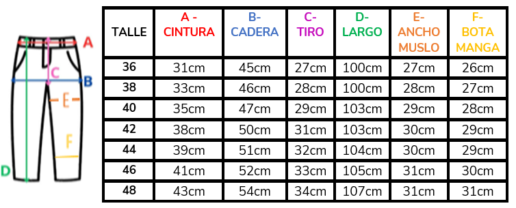 (A la hora de elegir tu talle, debes tener en cuenta que las mismas son tomadas en plano, por lo cual debes multiplicarlas x2 para saber el contorno real y también tener en cuenta la elasticidad de la tela).