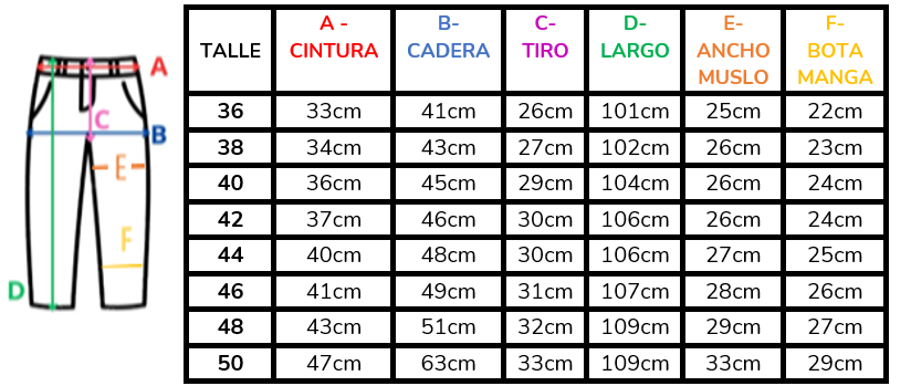 (A la hora de elegir tu talle, debes tener en cuenta que las mismas son tomadas en plano, por lo cual debes multiplicarlas x2 para saber el contorno real y también tener en cuenta la elasticidad de la tela).