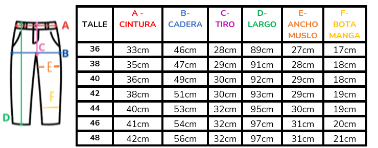 (A la hora de elegir tu talle, debes tener en cuenta que las mismas son tomadas en plano, por lo cual debes multiplicarlas x2 para saber el contorno real y también tener en cuenta la elasticidad de la tela).