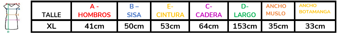 (A la hora de elegir tu talle, debes tener en cuenta que las mismas son tomadas en plano, por lo cual debes multiplicarlas x2 para saber el contorno real y también tener en cuenta la elasticidad de la tela).