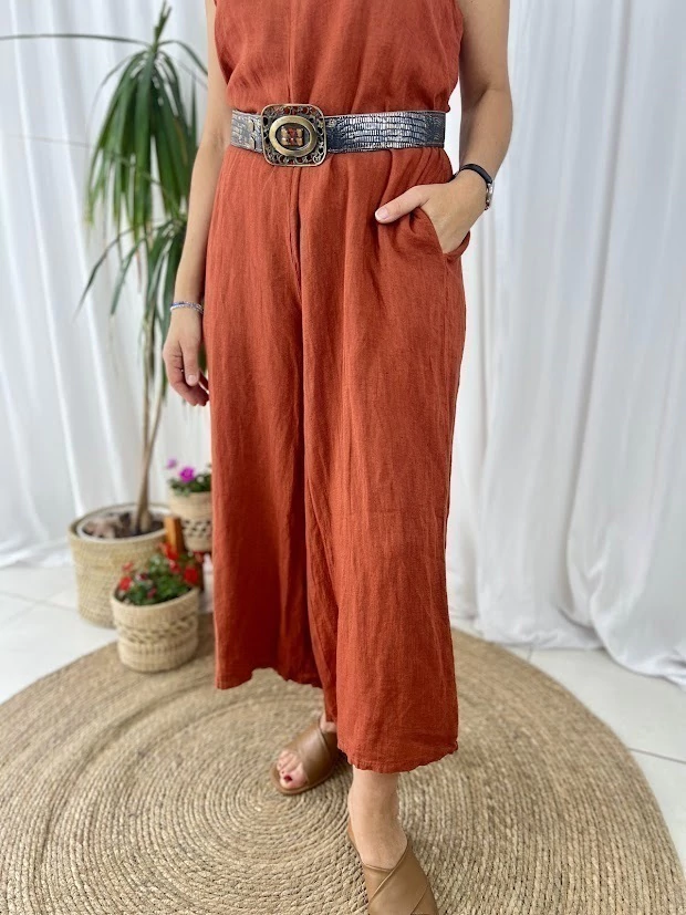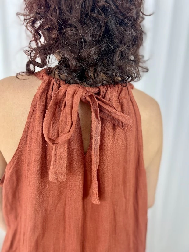 ✨ MONO POPI DE LINO COLOR TERRACOTA, CON ESCOTE EN V Y TIROS REGULABLES SEGÚN LA NECESIDAD Y GUSTO.