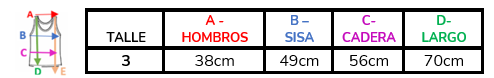 (A la hora de elegir tu talle, debes tener en cuenta que las mismas son tomadas en plano, por lo cual debes multiplicarlas x2 para saber el contorno real y también tener en cuenta la elasticidad de la tela).