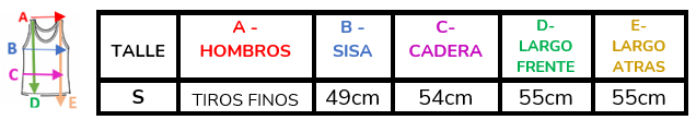 (A la hora de elegir tu talle, debes tener en cuenta que las mismas son tomadas en plano, por lo cual debes multiplicarlas x2 para saber el contorno real y también tener en cuenta la elasticidad de la tela).