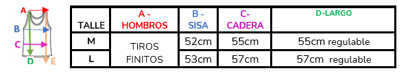 (A la hora de elegir tu talle, debes tener en cuenta que las mismas son tomadas en plano, por lo cual debes multiplicarlas x2 para saber el contorno real y también tener en cuenta la elasticidad de la tela).