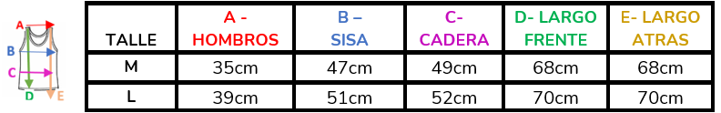 (A la hora de elegir tu talle, debes tener en cuenta que las mismas son tomadas en plano, por lo cual debes multiplicarlas x2 para saber el contorno real y también tener en cuenta la elasticidad de la tela).