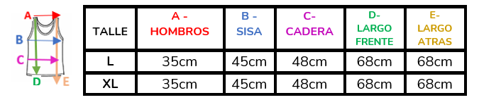 (A la hora de elegir tu talle, debes tener en cuenta que las mismas son tomadas en plano, por lo cual debes multiplicarlas x2 para saber el contorno real y también tener en cuenta la elasticidad de la tela).