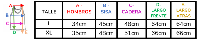 (A la hora de elegir tu talle, debes tener en cuenta que las mismas son tomadas en plano, por lo cual debes multiplicarlas x2 para saber el contorno real y también tener en cuenta la elasticidad de la tela).