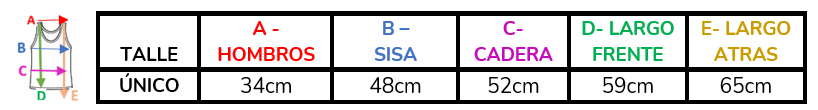 (A la hora de elegir tu talle, debes tener en cuenta que las mismas son tomadas en plano, por lo cual debes multiplicarlas x2 para saber el contorno real y también tener en cuenta la elasticidad de la tela).