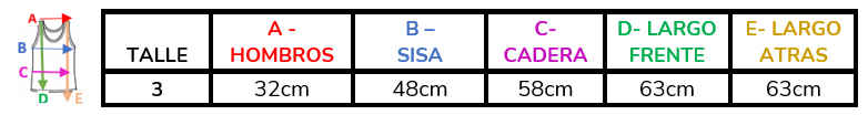 (A la hora de elegir tu talle, debes tener en cuenta que las mismas son tomadas en plano, por lo cual debes multiplicarlas x2 para saber el contorno real y también tener en cuenta la elasticidad de la tela).