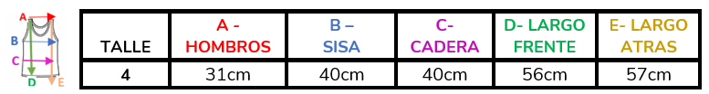 (A la hora de elegir tu talle, debes tener en cuenta que las mismas son tomadas en plano, por lo cual debes multiplicarlas x2 para saber el contorno real y también tener en cuenta la elasticidad de la tela).