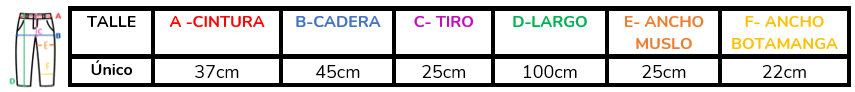 (LAS MEDIDAS QUE FIGURAN EN LA TABLA CORRESPONDEN AL PANTALÓN DE MODAL QUE VIENE DEBAJO, Y POR EL TIPO DE TELA TENER EN CUENTA QUE CEDE UN POQUITO MÁS - LA GASA ES MÁS AMPLIA PARA PERMITIR EL MOVIMIENTO.