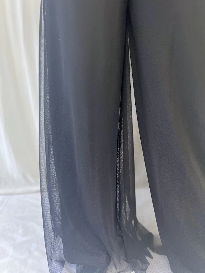 PRESENTA MICROTULL SUPERPUESTO QUE LE BRINDA UN MOVIMIENTO EXCEPCIONAL A ESTE PALAZO. CUENTA CON CINTURA ELASTIZADA PARA BRINDAR COMODIDAD Y MOLDEAR TU FIGURA.