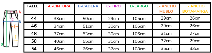 (A la hora de elegir tu talle, debes tener en cuenta que las mismas son tomadas en plano, por lo cual debes multiplicarlas x2 para saber el contorno real y también tener en cuenta la elasticidad de la tela).