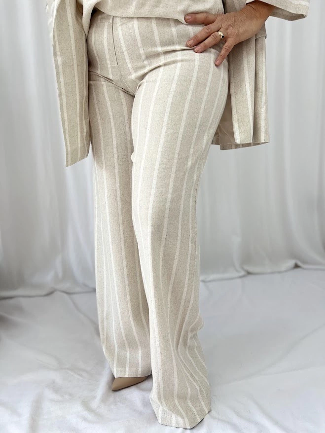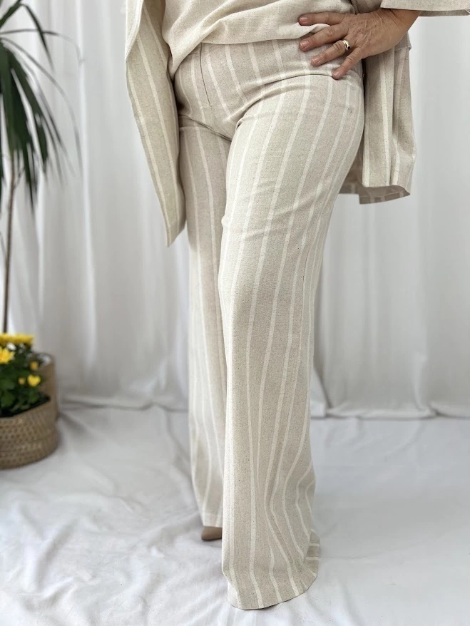 💖¡ESTE PALAZZO RAY ES EL ALIADO PERFECTO PARA TU GUARDARROPAS DE ESTA NUEVA TEMPORADA!💖CONFECCIONADO EN LINO BEIGE CON DETALLE DE RAYAS EN NATURAL , IDEAL PARA DARLE UN TOQUE ELEGANTE A CUALQUIER OUTFIT. SU DISEÑO VERSÁTIL TE PERMITE COMBINARLO EN UN LOOK MÁS ARREGLADO CON CAMISA O BLUSA O UNO MÁS CASUAL CON UNA REMERA Y ZAPATILLAS.🌸🌸