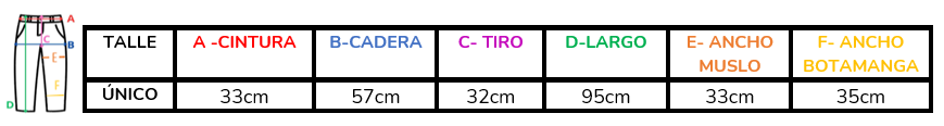 (A la hora de elegir tu talle, debes tener en cuenta que las mismas son tomadas en plano, por lo cual debes multiplicarlas x2 para saber el contorno real y también tener en cuenta la elasticidad de la tela).