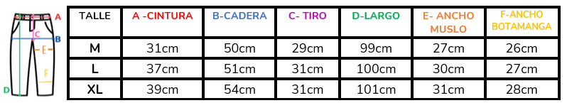 (A la hora de elegir tu talle, debes tener en cuenta que las mismas son tomadas en plano, por lo cual debes multiplicarlas x2 para saber el contorno real y también tener en cuenta la elasticidad de la tela).